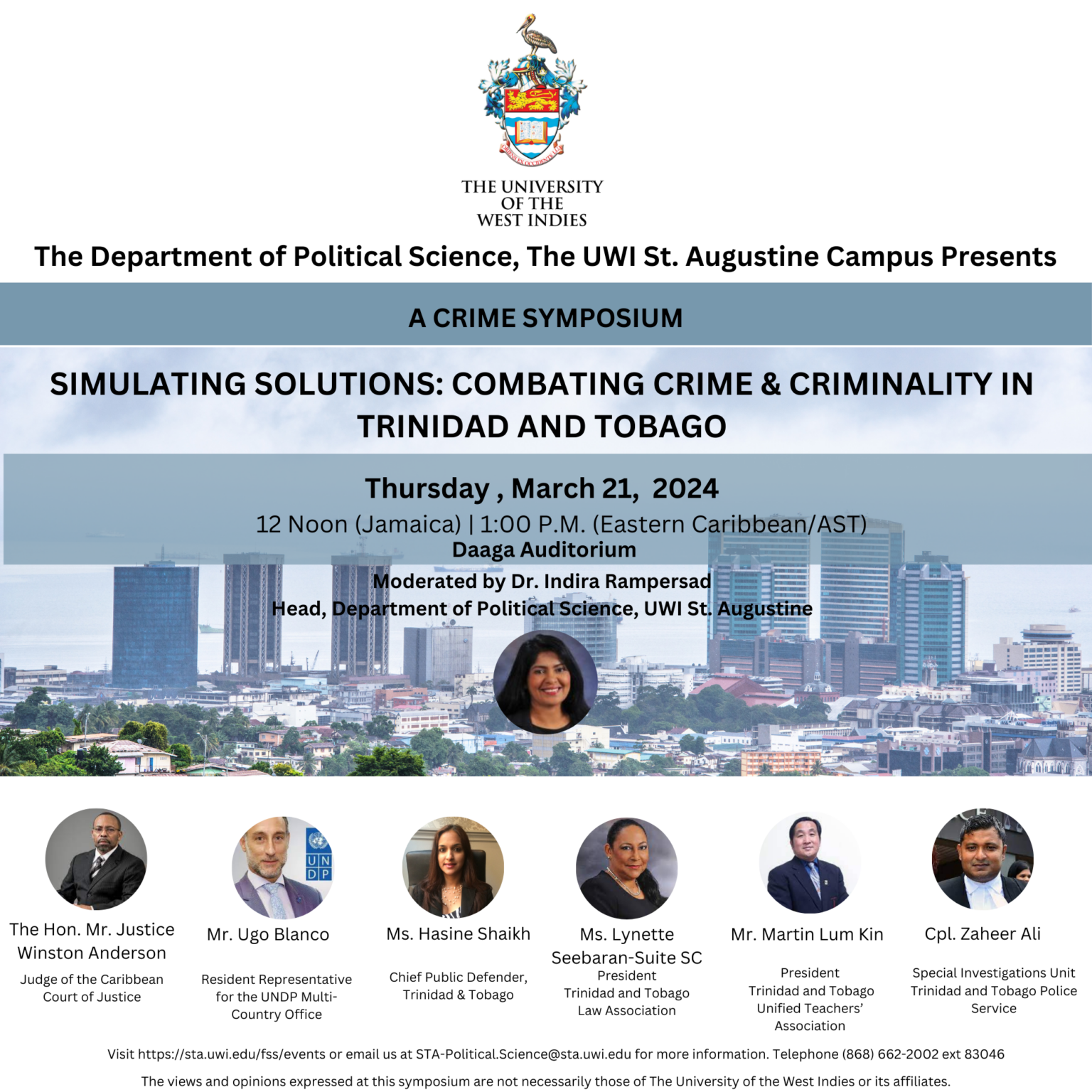 On 21 March 2024, the University of the West Indies convened a symposium on “Stimulating Solutions: Combating Crime and Criminality in Trinidad and Tobago” at the Daaga Auditorium. The Symposium featured specialists from the criminal justice sector. The Academy was represented by its chairman, the Hon Mr Justice Winston Anderson. Justice Anderson spoke to the solutions or recommendations presented in the Needham’s Point Declaration adopted at the end of the 7th CCJ Academy Biennial Law Conference held at Hilton Hotel, Needham’s Point, in Barbados on 18-20 October 2023. The Declaration addresses 6 thematic areas and contains 59 recommendations. Justice Anderson highlighted that these recommendations which called for reform in all areas of criminal justice including the police, prosecution, and judiciary, supported by legislative initiatives and provision of the required resources. He called for accountability for the discharge in the discharge of the State’s responsibility to protect its citizens and residents from crime and criminality. See his remarks here.